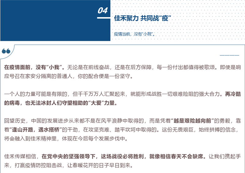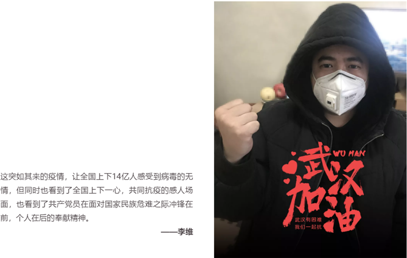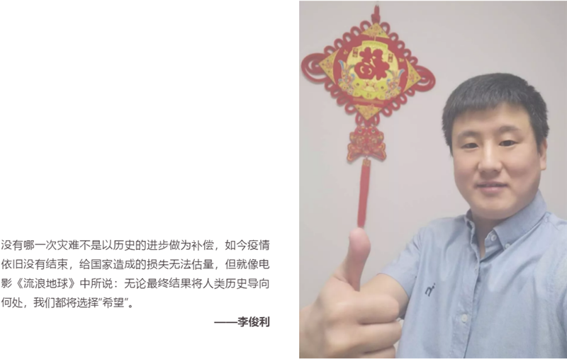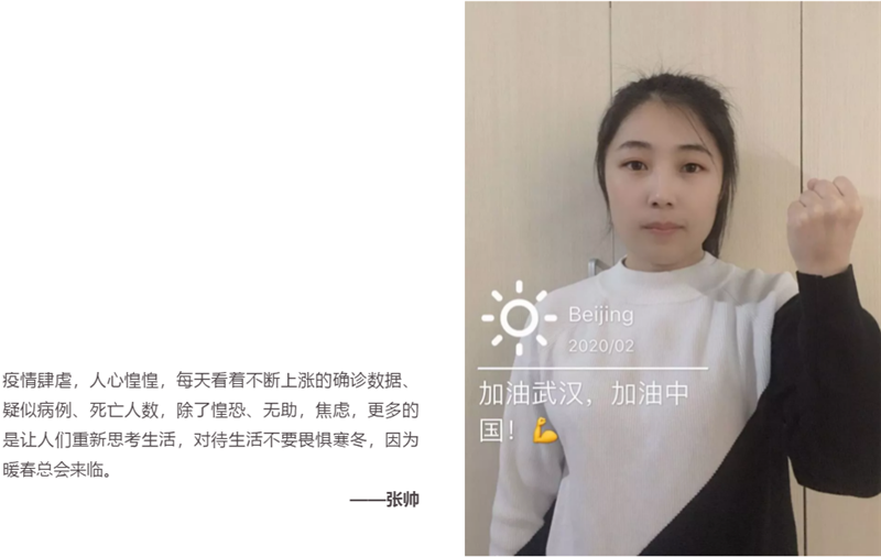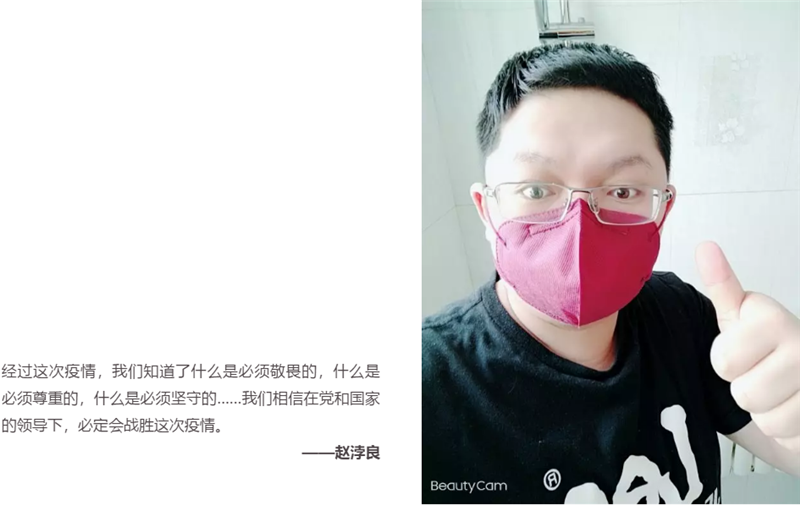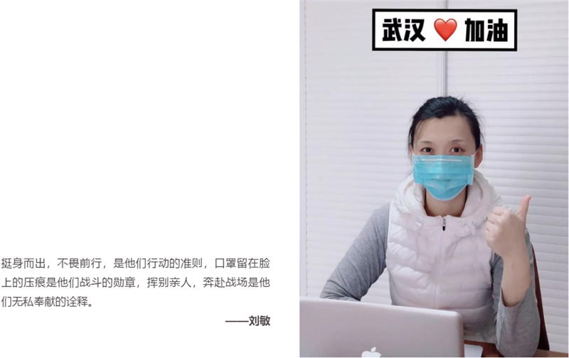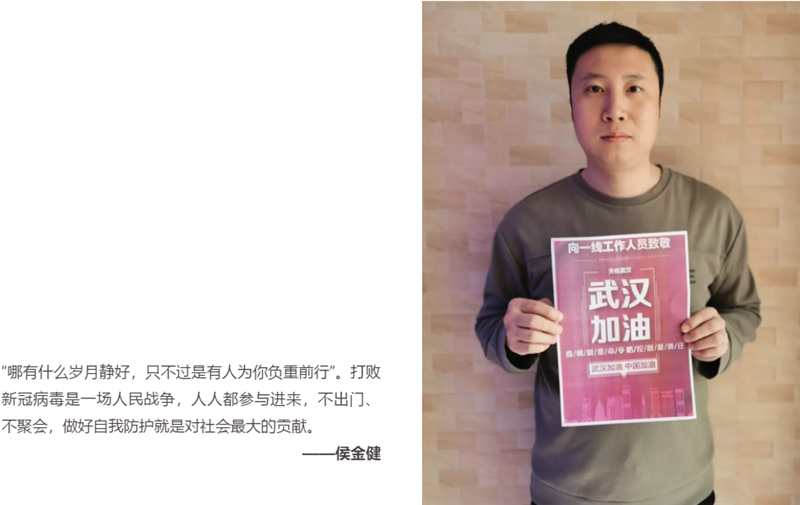 针对此次重大事件,(中国)科技公司传媒还于上周组织了“疫情当前的我”图文征集活动,分享疫情防控期间,公司员工的所感所想,以记录“小我”来记述“大爱”。